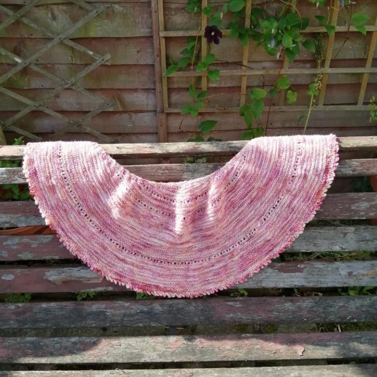 When I got back I knew I wouldn’t finish it so I frogged back a bit, did some garter rows and ended with a picot edge. Now I call it my pseudo Knit and Slide shawl. The yarn is from Stranded dye works. I’ve known Amy for years as she used to work in Hobbycraft and ran the knit group round the corner from me in Croydon.. years ago now.