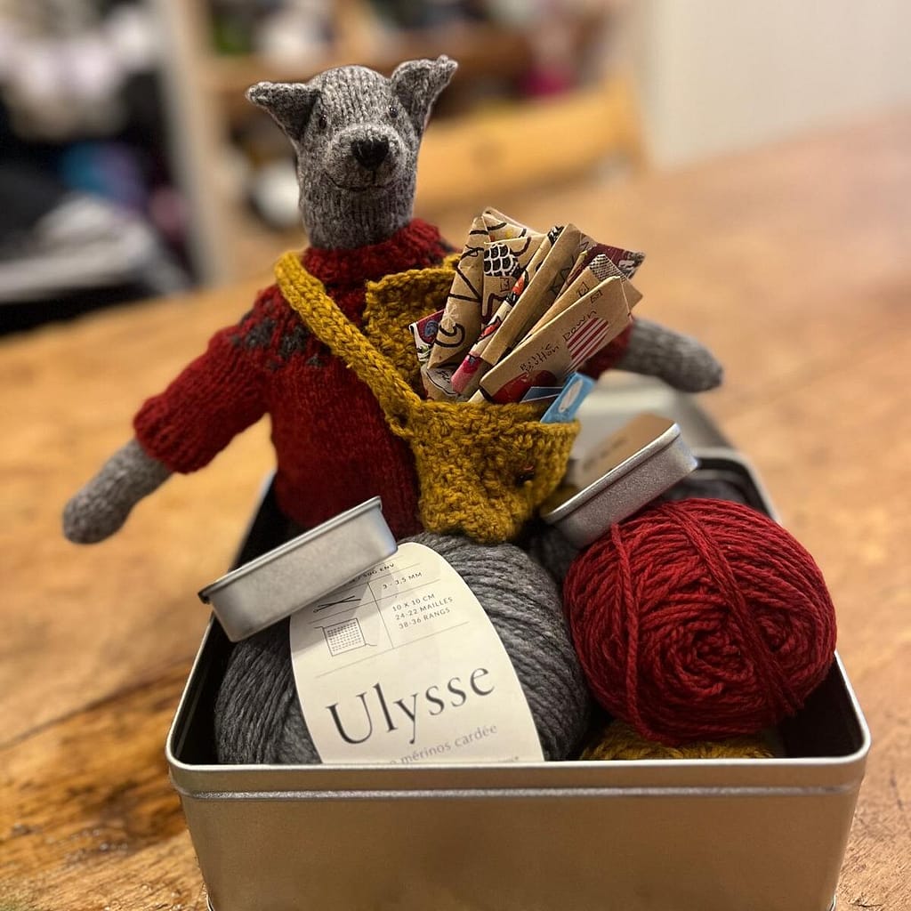 At Wild and Woolly, we are marking the single pattern release with a special Tino, the Mail Wolf Kit – a tin with all the materials you’ll need to get better acquainted with Tino and his letters and stories.