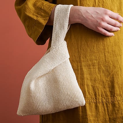 This is the one you can knit, finish and then use on the way home. JL’s perfectly sized and formed dumpling bag is made from linen, but other planty fibres will work well too. Our Kalinka Linen would be perfect if you hold it double, or for just as nice and half the price, choose the Damasco cotton linen blend. And if you finish it too quickly, make another one! You know everyone else will want one too when they see yours 🙂.