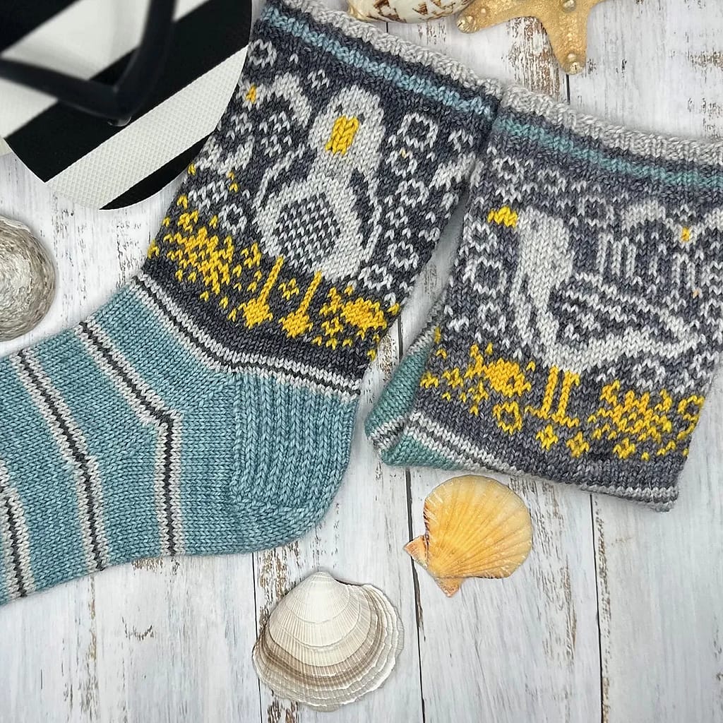 Yes, they’re noisy and will nosh your ice cream if you don’t look out, but they’re also the sound of the seaside and the summer, plus I suspect that the gulls on SLK’s sock cuffs are probably very friendly when you get to the know them, not to mention huge fun to knit.