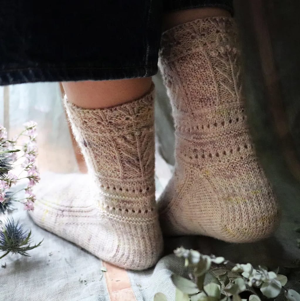 Best would be to use up your left over scraps from stash for the colourwork, but if you haven’t got the right ones there, the Edelweiss is ideal as that comes in diddy 25g balls. Other sock yarns that would be beautiful for this design include Exmoor Sock, Mondim and Town Dyer 4ply.