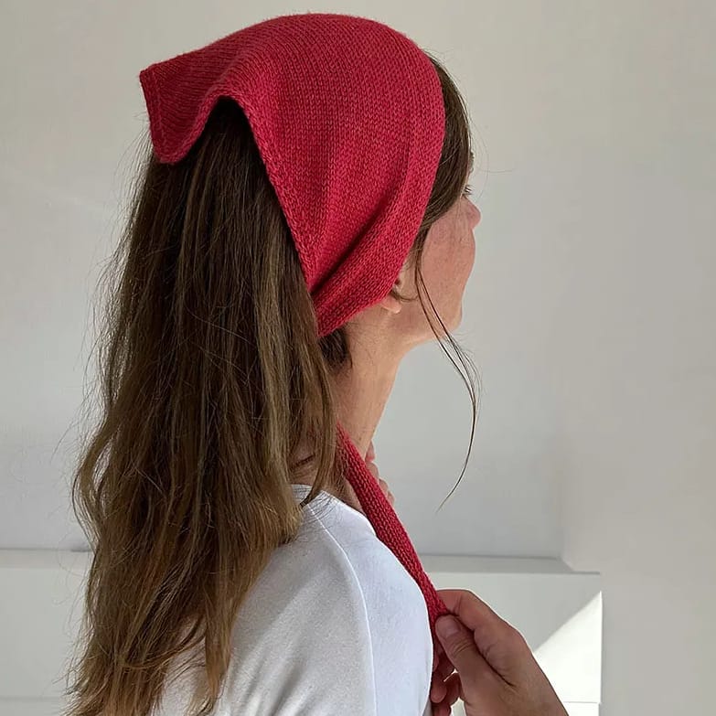 Ok, I hear you already, you’re on holiday, there’s not much of it left, there’s wispy clouds and a horizon to stare at. You want child’s pose, not downward dog or angry cat. Here you go then.. the simplest triangle which comes with the added bonus of being a perfect learn-to-knit project if you’ve got any bored half-pinters with you, and oh yes! It turns into a bandana-hair wrap to keep your hair out of your face if the wind picks up.