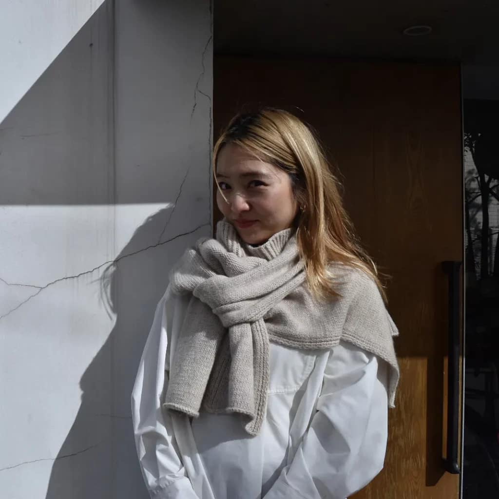 You know the kind of weather where it’s too warm to wear your sweater, but chilly enough to have it around your shoulders and tie the sleeves like a scarf? But at the same time the sweater’s a bit bulky to wear like that. Well MT has designed you a solution – It’s a kind of mock sweater with pretend sleeves, so it wraps in that nice cosy way without all the surplus fabric. Cool, right?!