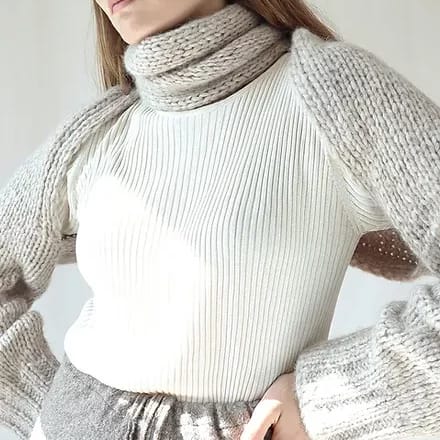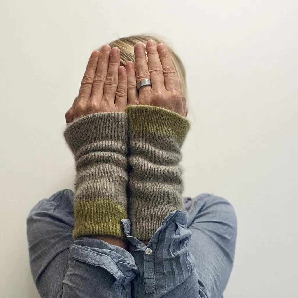 All is not as it seems in hand-knit-land today. No sooner do we congratulate a knitter on the beautiful sweater we can see poking out from inside their jacket, than they give us a cheeky wink and reveal that it’s just a knitted neck. Deliciously warm cuffs turn out to be weird sleevey things that have neither upper arms nor bodies. What are these wardrobe rascals even called? As the year marches on and the weather gets colder, Brontë’s been exploring behind the velvet curtain of the of the gallery of sartorial illusions to find out if this is knitwear for the fashionably absurd or knitting for the ridiculously ingenious. She’s now returned with a collection of designs that serve up bafflement and delight in just about equal measure..