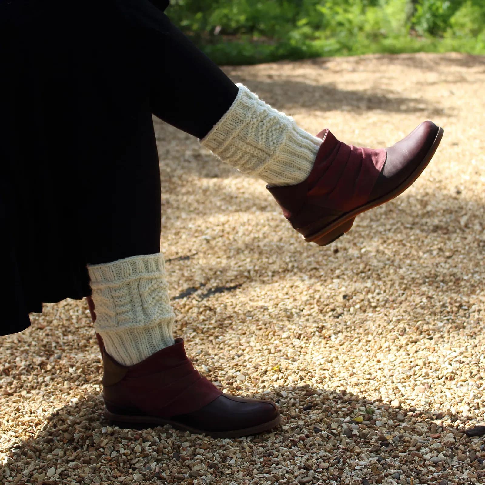 Dip your toes into sock knitting without getting stuck on the heel, by coming out the other end with a boot cuff instead. Socks this thick wouldn’t be easy to wear inside normal shoes but, worked as a cuff, they can sit just around your ankle without bulking out your feet. I couldn’t resist these ones because of the nod to gansey patterning, which is also why I’d love to knit them in our proper Guernsey 5ply. But if that doesn’t appeal, Sheepsoft, WYS BFL DK, or RP Vovó would all be excellent alternatives.