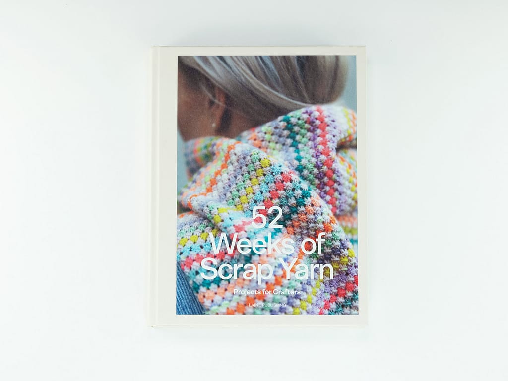 52 Weeks of Scrap Yarn: Projects for Crafters is an inspiring collection that contains 52 scrap yarn patterns ranging from small to large projects, from accessories and home decor to sweaters and cardigans. Some designs are made entirely of scraps, while others use them in smaller details as an eye-catching design element. In addition to knitting, there are also a few crochet pieces.
