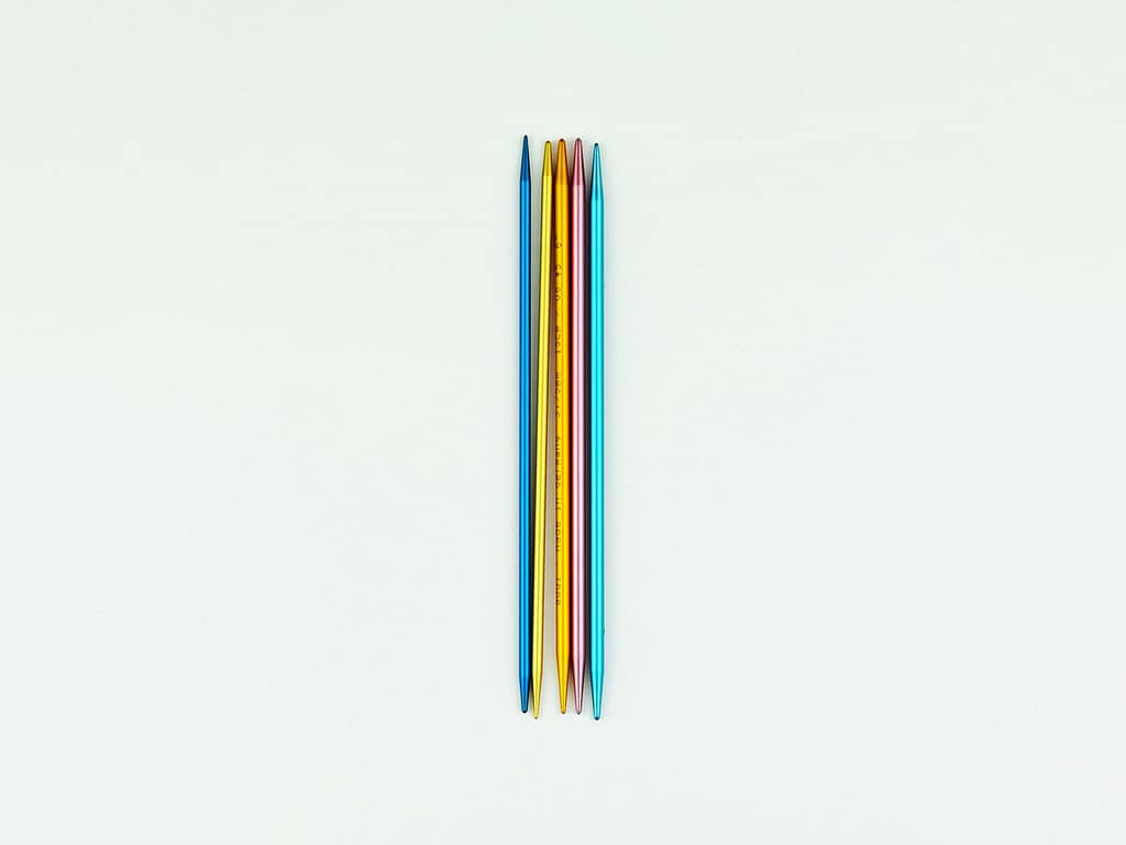 Blunt and to the point: Addi's Colibris are DPNs worth going round in circles for. Smooth and featherlight like you like them, coloured so you know where you are, and then marvellously pointy for lace stitches at one end and roundedly blunt for splitty yarns at the other. Brilliant.