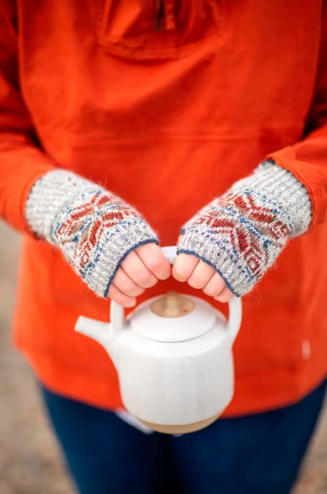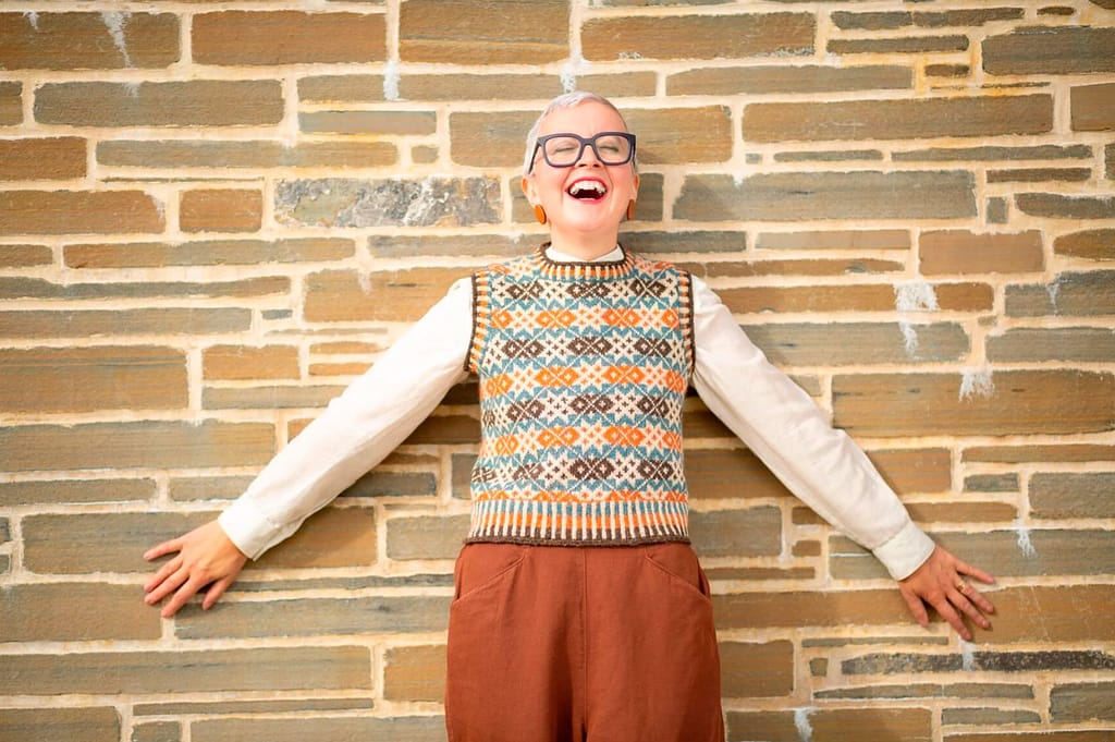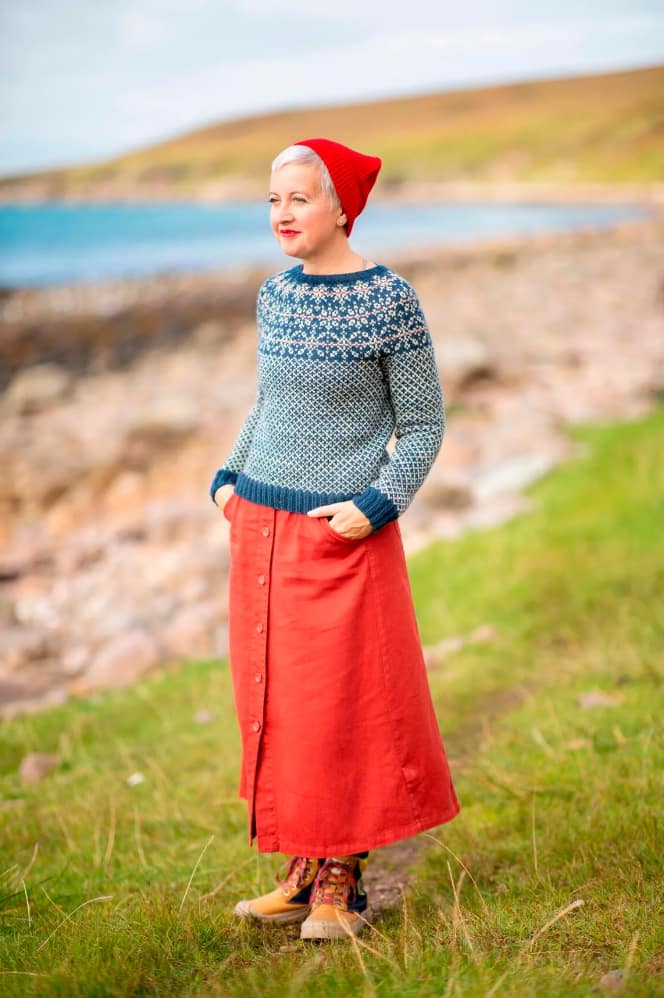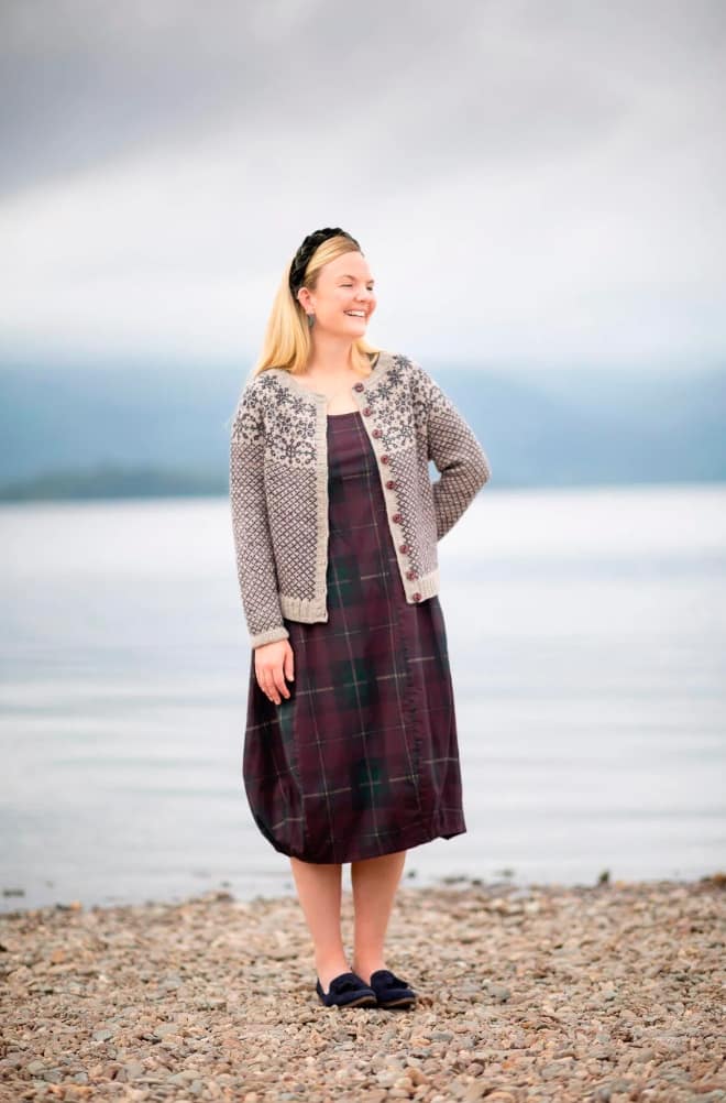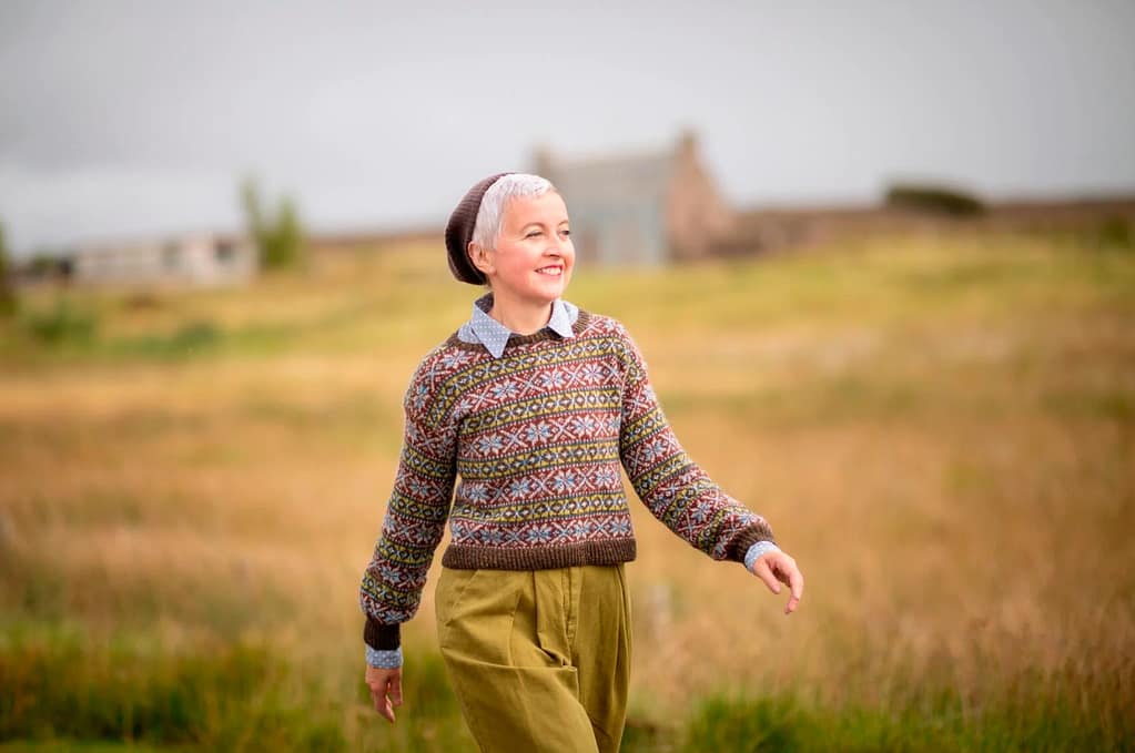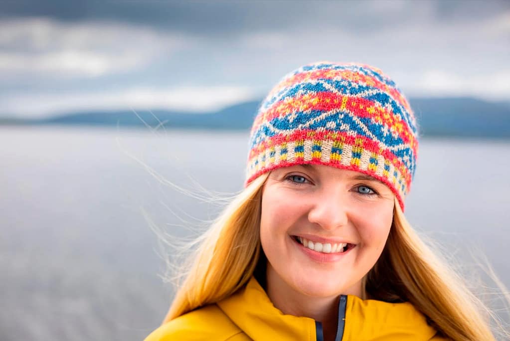 In Allover, Kate Davies has gathered together a colourful collection to capture the joy of stranded knitting. Inside this book you’ll find fourteen designs that are bold, playful and eclectic. Influenced by northern colourwork traditions from Norway and Sweden to Iceland and Shetland, there are fourteen allover designs to choose from, including graphic hats and mitts and cosy yoke pullovers and cardigans. In Starnkeeker, the familiar monochrome motifs of Selbu accessories are adapted for a colour-blocked Argyle vest, while the Tìoraidh cardigan reveals how a small “filler” motif might become a two-tone pattern’s main attraction. Kate encourages you to mix things up as well: many of the patterns are charted and photographed in several different colourways in patterns that are full of knitterly inspiration and opportunities for play. Whether you are whipping up a jolly pair of Pouzles, or taking your time over a show-stopping piece like Schene, there’s much creative joy to be found in the pages of this colourful book.