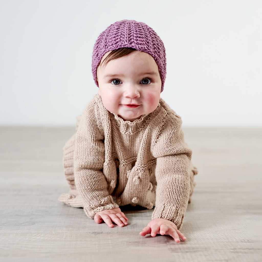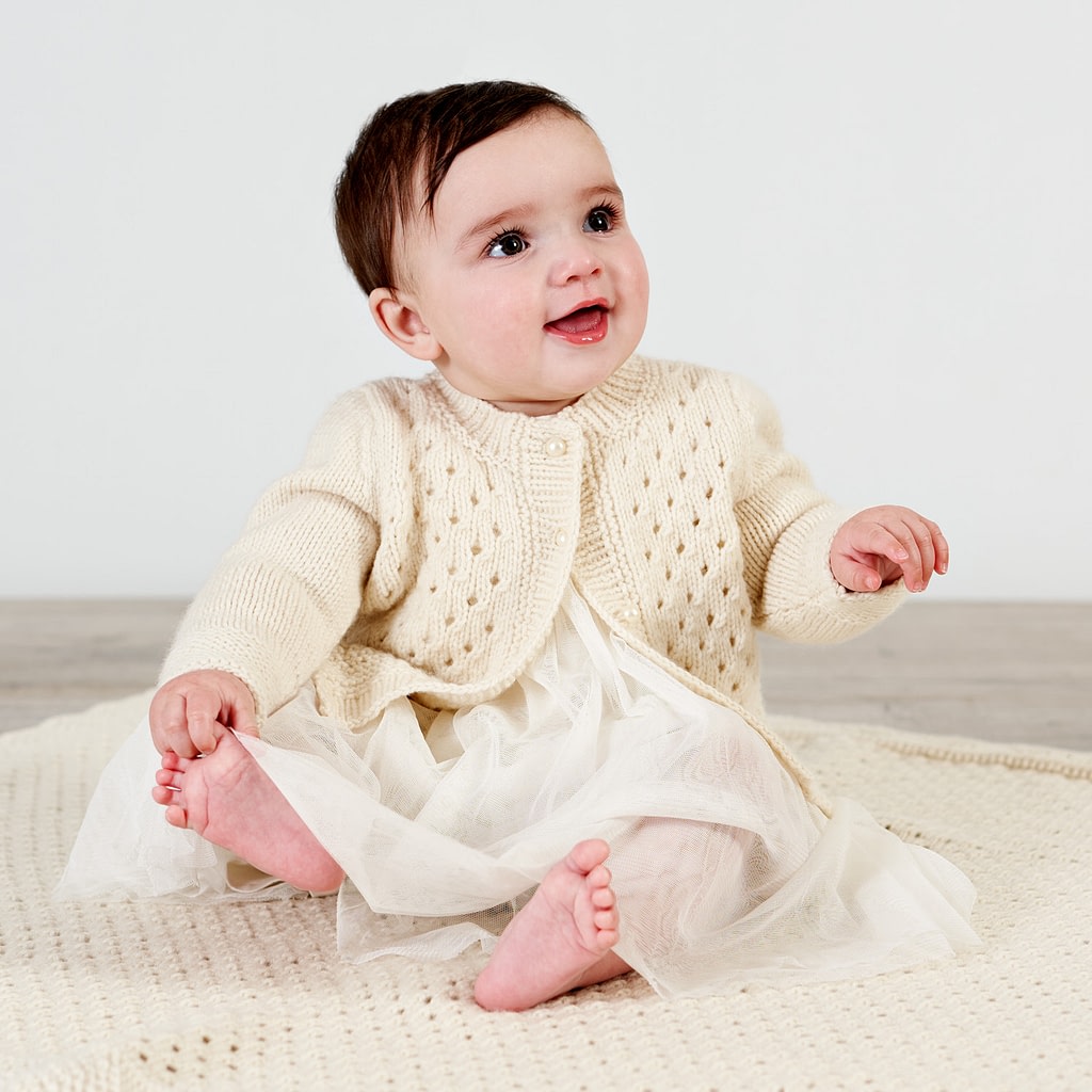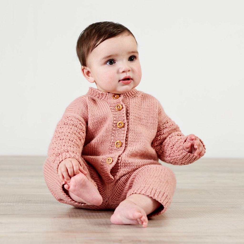 A delightfully nostalgic collection of baby knits (0 to 18 months) by Jenny Watson for the West Yorkshire Spinners Bo Peep Pure yarn. The book has 8 garments including sweaters, cardies, leggings and all-in-ones plus 4 accessory sets of bonets, booties and mitts, beautifully photographed and laid out, with a handy spiral binding for easily laying flat whilst you're knitting.