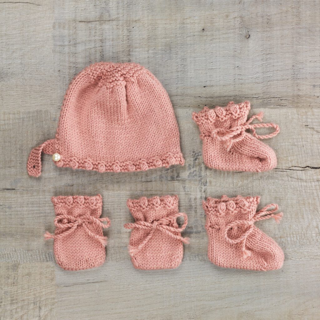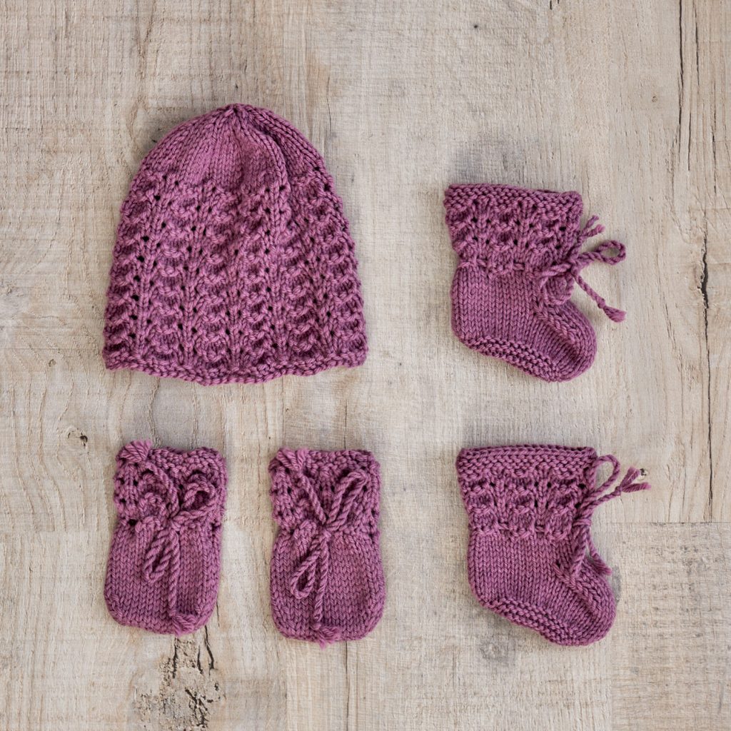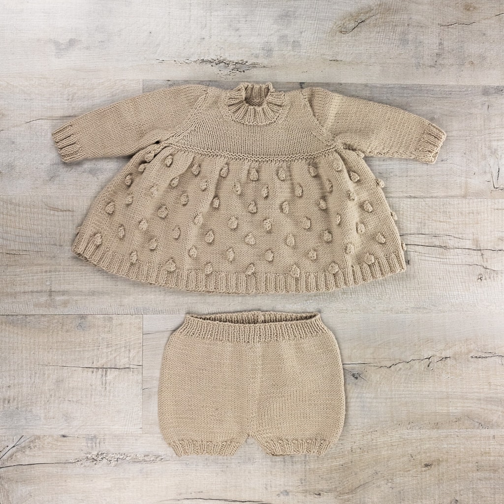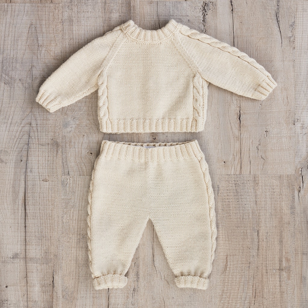 A delightfully nostalgic collection of baby knits (0 to 18 months) by Jenny Watson for the West Yorkshire Spinners Bo Peep Pure yarn. The book has 8 garments including sweaters, cardies, leggings and all-in-ones plus 4 accessory sets of bonets, booties and mitts, beautifully photographed and laid out, with a handy spiral binding for easily laying flat whilst you're knitting.