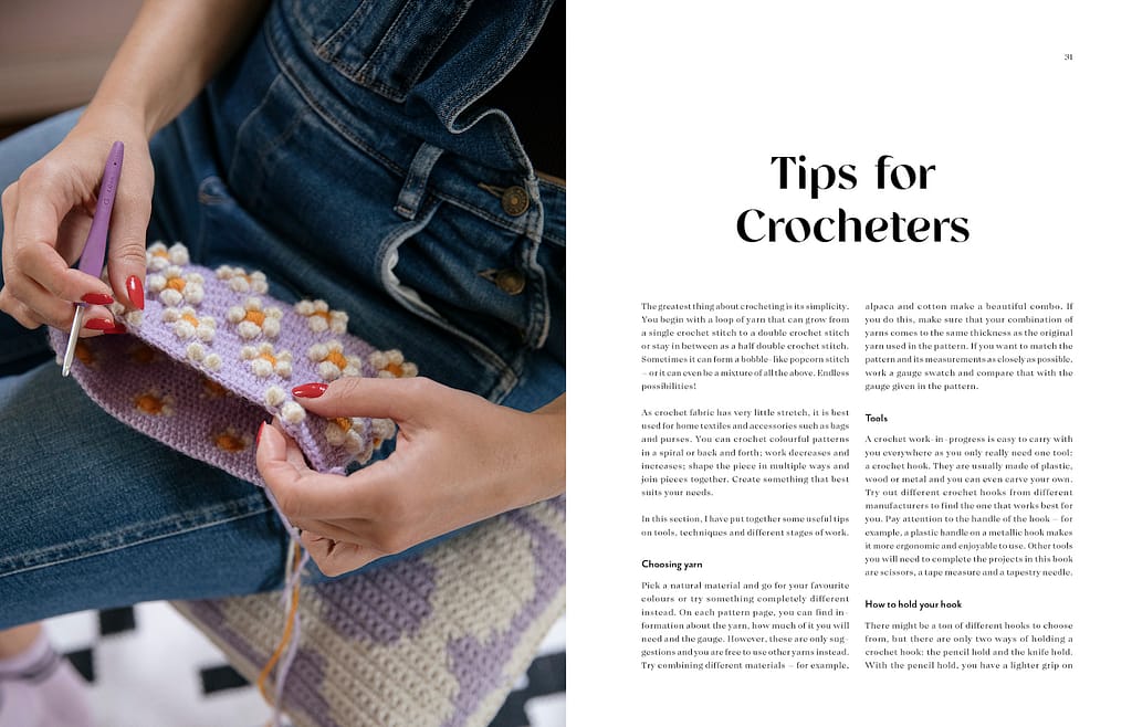 Crochet has certainly made a comeback, and no wonder it's a playful, mindful and easy craft; its sturdiness allows you to create wear-intensive items like carpets and bags; and the results are nothing short of stunning. In this amazing collection, Molla Mills brings together the best in modern crochet design, with projects including a duffel bag, cushion, sun visor and picnic blanket.