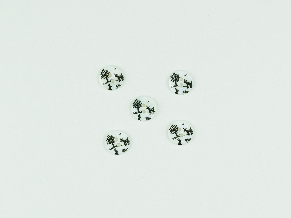 Deer, rabbit and tree river shell 12mm buttons