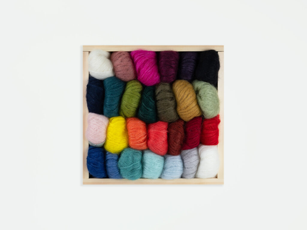 Worked on its own or doubled with itself, it will create feather light fabric that suits big stitches that make room for the mohair fluff to express itself and diffuse the light. Or for project where it is held alongside a different yarn, expect the thicker yarn to be transformed to create a fabric considerably softer, warmer and fluffier than it would otherwise have been.