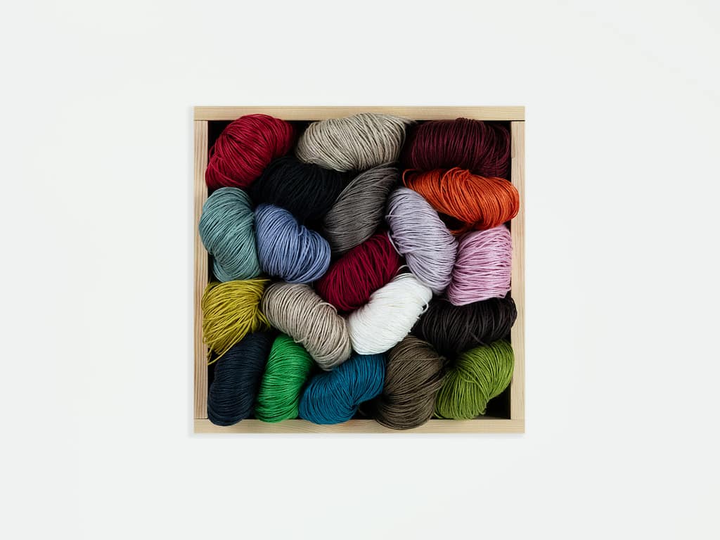 This 4ply/sport weight Swedish yarn is made from 100% linen in a vivd array of colours from vibrant jewel shades to soft pastels which all share an astonishing glow due to the light reflective surface of the linen.