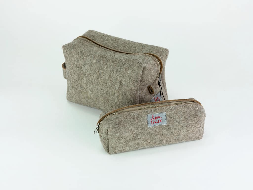Both pouches are made from felt which is made from 100% native Portuguese wool in its natural colors, using upcycled wool waste generated by the production of Rosa Pomar's yarns. Wool felt is a natural and durable material.