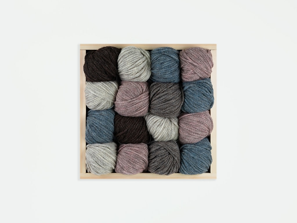 Sheepsoft blends the softness and lustre of Bluefaced Leicester with the bounce and toothiness of Masham. The result is an uncommonly hardwearing yarn for the softness, with next to no bobbling. The palette is dyed over the naturally heathered grey-brown of the sheep's fleece, giving each of the gently dyed shades an unusual depth. Sheepsoft is worsted spun but the Masham in the blend seems reluctant to completely concede its woolliness, so there's a whisper of something sheepier within the smoothness and softness of the twist.