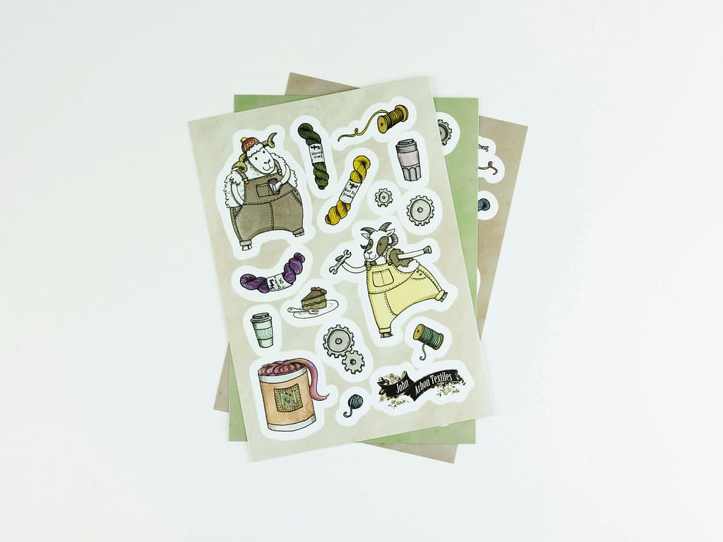 In this set of three sheets, you’ll find nine wee sheep - all from the breeds used in the John Arbon spinning mill, dressed as Mill Folks in dungarees and ear defenders (safety first!). They’re dabbling in a bit of craft and helping the mill folk in their jobs at the Mill. You’ll also find a few cute stickers of yarn, tops, machinery and even a few flasks of tea too – gotta keep those hydration levels up!