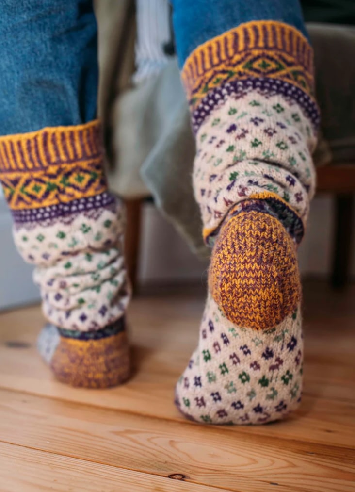 Discover vivid Fair Isle patterns, Norwegian motifs, and designs inspired by the sea breeze and luminous light of our ocean-encircled islands. An exciting addition is the inclusion of our heritage patterns: working with the Unst Heritage Centre, Shetland Museum and Donna Smith, we have revived and reinterpreted two distinctly different vintage garments for today’s knitter. We also have two articles to accompany each of these patterns.