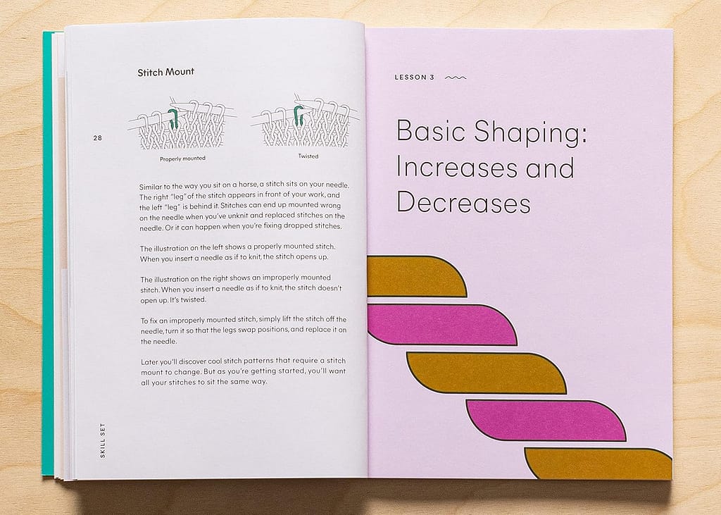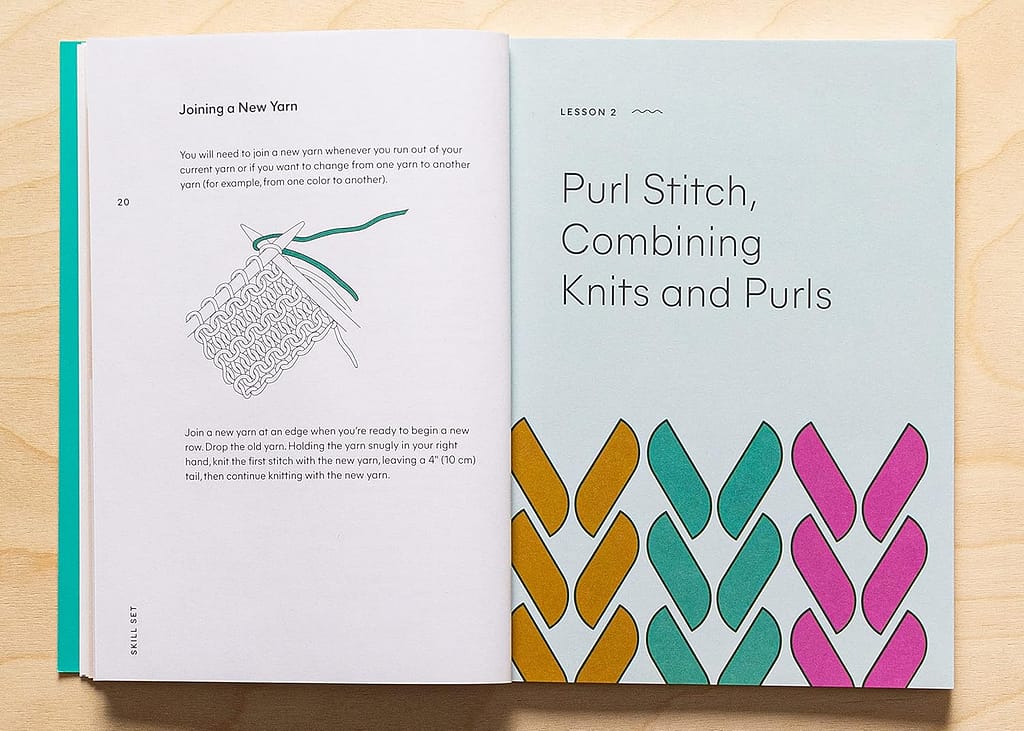 We emphasize practice in each lesson, so there are swatches to make for each technique. There's just one pattern, for a simple hat, that lets a new knitter try out the techniques.