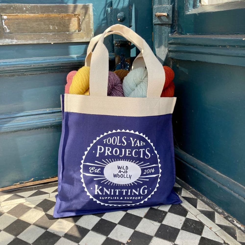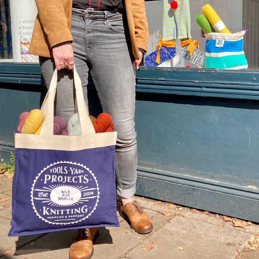 Wild and Woolly's canvas bags feature a specially comissioned design by Hana Whaler. They are made from organic cotton, grown, dyed, sewn and screen printed by a cooperative in India called ReWrap. The bags are transported by sea to the UK to minimise environmental impact.